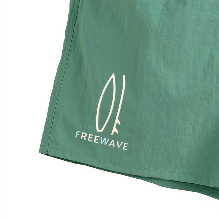 「FREEWAVEナイロンショーツ」が新登場!サーフボードのイラストがプリントされたシンプルなデザインは、海やビーチでのアクティブなシーンにピッタリです。軽量かつ速乾性に優れたナイロン素材で作られているため、海水や汗を素早く吸収し、快適な着心地を提供します。